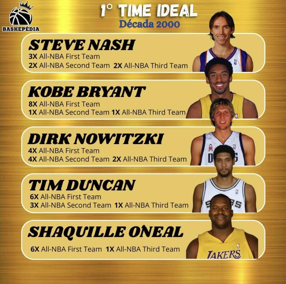 近日,篮球数据媒体 Baskepédia 最近发布了《2000年代最佳阵容》评选,依据球员在2000—2009年间入选NBA阵容的次数与当期表现进行综合排序。下面按该评选给出第一阵、第二阵与第三阵名单,便于对比与参考。